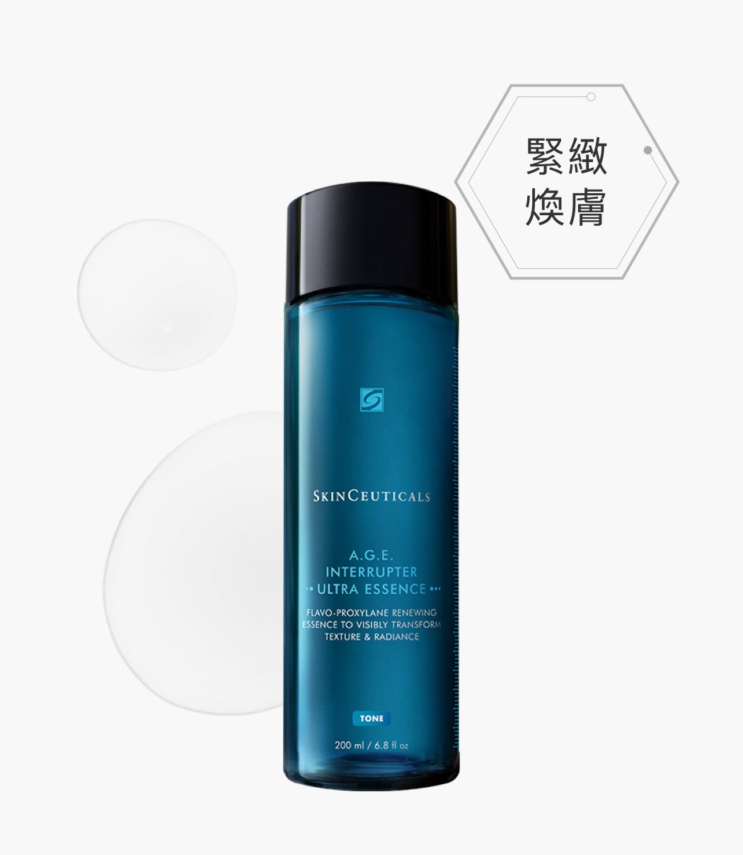 作爲一款高效抗醣精華水,A.G.E.煥顏精華水蘊含專利Proxylane溶液^、抗醣複配溶液*、羥基乙酸及小分子透明質酸鈉,有效:1. 抑制膠原醣化*,鎖住健康膠原,防止流失 2. 激發膠原再生,令肌膚緊緻飽滿 3. 瞬即補水煥膚,疏通毛孔並細膩肌膚,助力後續產品吸收。